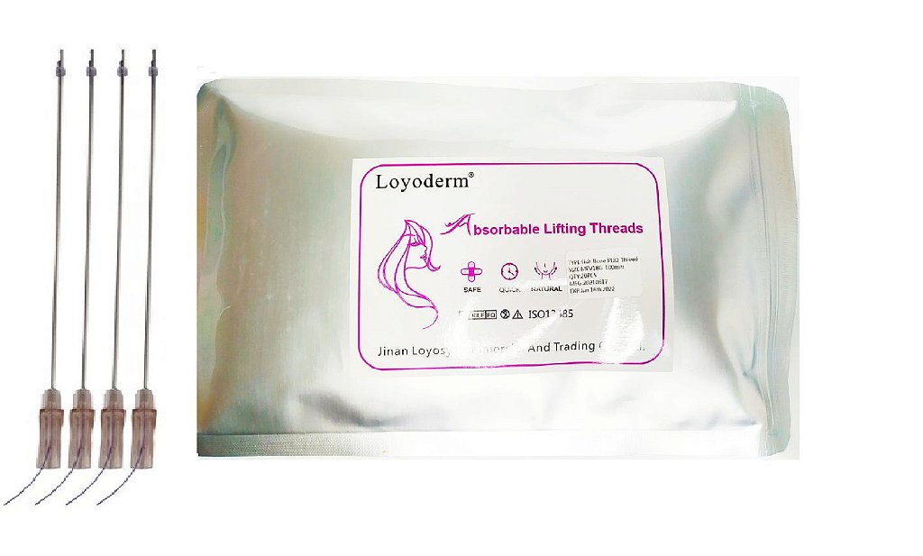 Pack Fio Pdo Cog 4d Espiculado Lifting 19gx150mm (20 Unidades) Loyoderm Ponta Cânula W -Fios de Sustentação PDO Tração Espiculado + Agulha para pertuito