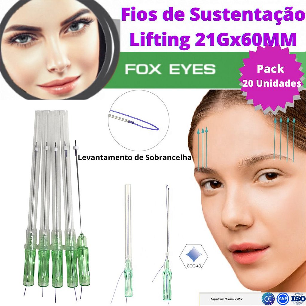 Fio Pdo Cog 4d Espiculado Lifting 21gx60mm (20 Unidades) Loyoderm Ponta Cânula L Blunt -Fios de Sustentação PDO Tração Espiculado Fox Eyes + Agulha para pertuito
